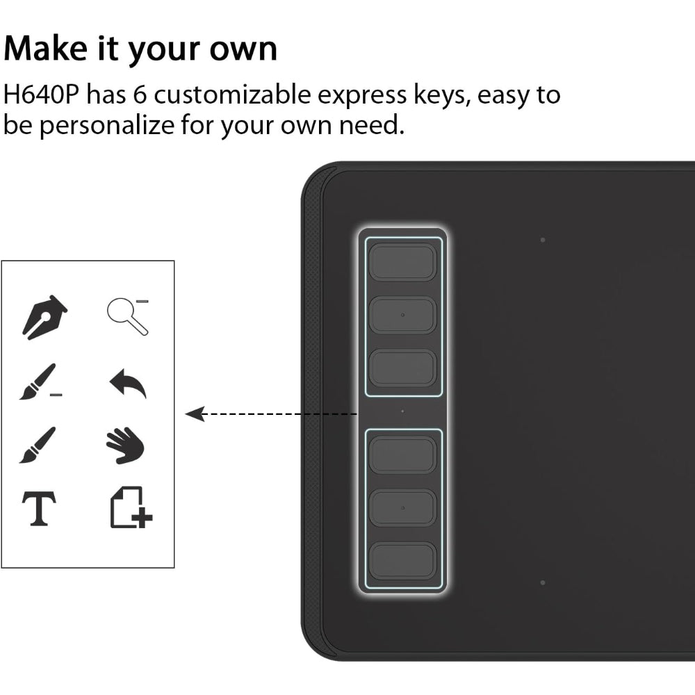 Huion Inspiroy H640P is a lightweight and compact graphics tablet ideal for digital drawing, online teaching, and document signing. With a responsive battery-free pen and customizable express keys, it offers a smooth creative experience for beginners and professionals alike.